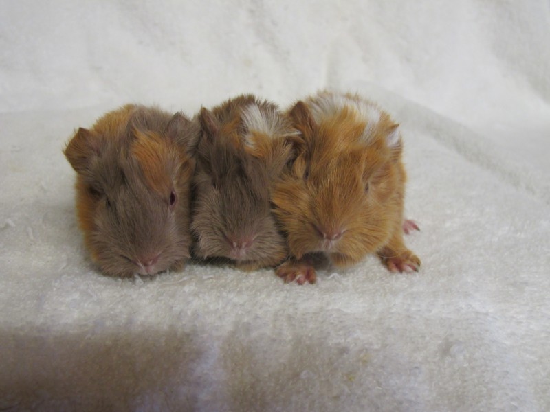 Dnes přivedla na svět 3 mláďata Hellen, 2 holky a 1 kluka. Všichni mají jemnější srst, jeden předek jejich matky byl alpaka. Všichni jsou tricolorní, otec je Tolar a vrh je to R, Robin, Rebelka a Roxy.