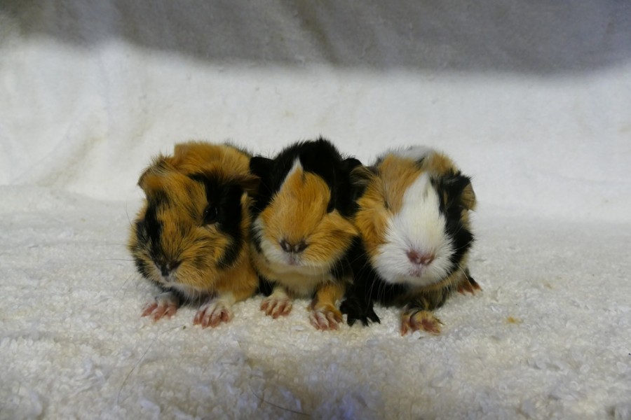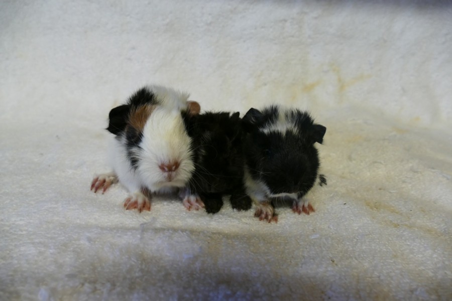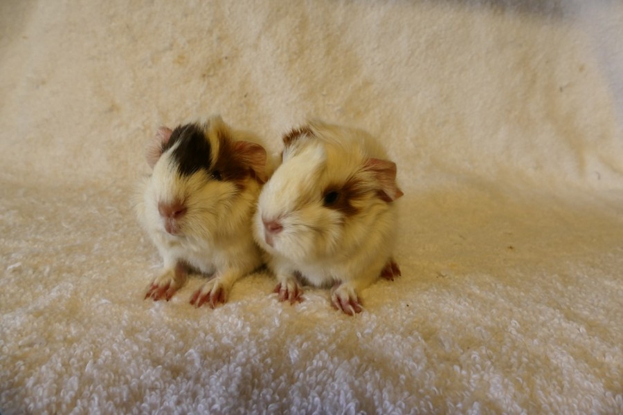 O první letošní přírůstek do morčecí rodiny se postarala Whitney, má dvojčátka - trikolorní. Vrh "T", otcem je Tolar. Jména Tex a Tina.